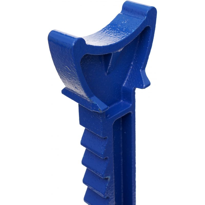 Solidna konstrukcja wykonana z grubej, masywnej blachy stalowej zapewnia stabilność oraz trwałość podczas użytkowania. Mechanizm zapadkowy umożliwia precyzyjną regulację wysokości w wielu poziomach, co pozwala dopasować ustawienie do aktualnych potrzeb pracy.