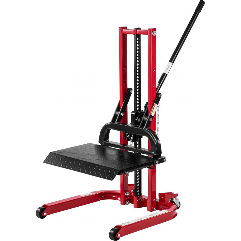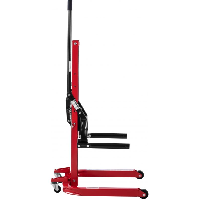 Podnośnik nie wymaga stałego stanowiska pracy – dzięki czterem kołom jezdnym, w tym dwóm skrętnym, można go łatwo przemieszczać i ustawić dokładnie tam, gdzie jest potrzebny. Solidna i stabilna konstrukcja zwiększa bezpieczeństwo pracy, a napęd oparty na sile mięśni sprawia, że urządzenie jest wygodne w codziennym użytkowaniu.
