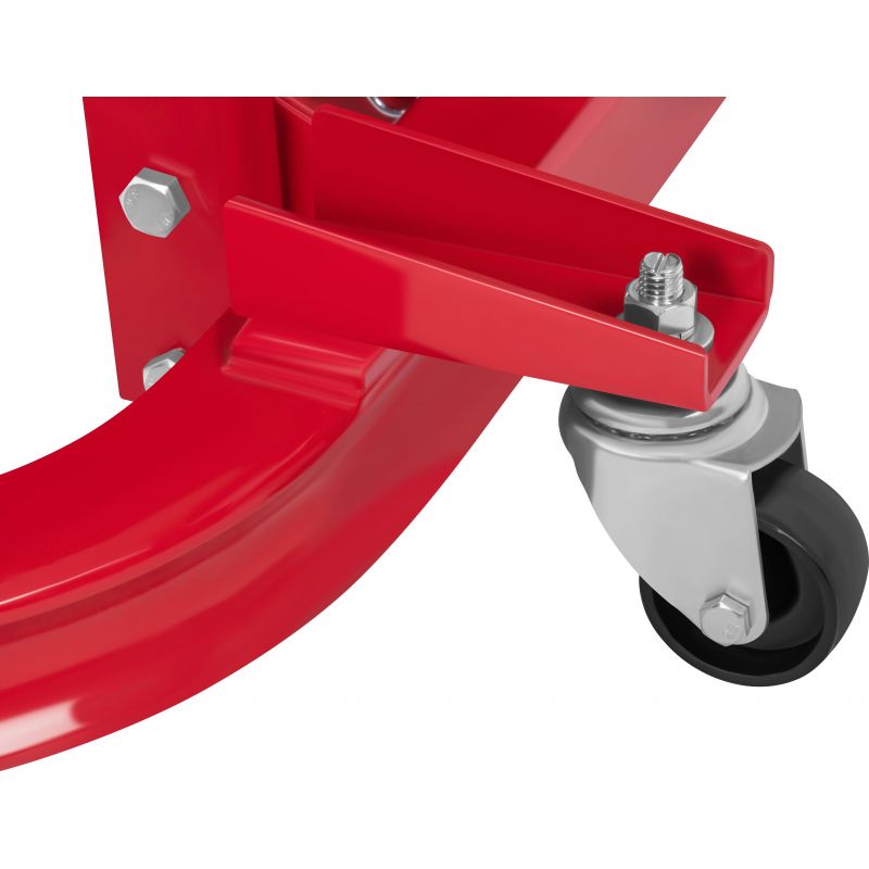Model KD5305 doskonale sprawdza się podczas prac blacharskich, lakierniczych, konserwacji podwozia czy obsługi układów wydechowych. Uchwyt widłowy w kształcie litery U z dwupunktowym podparciem pozwala na podnoszenie samochodu za jedno koło, zapewniając swobodny dostęp do progów i dolnych partii karoserii. W zestawie znajduje się również nasuwana podstawa pod ładunek, umożliwiająca transport ciężkich elementów.