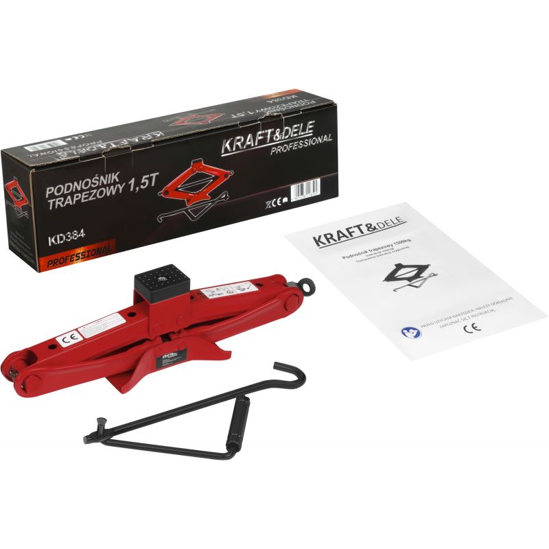 Model KD384 charakteryzuje się solidnym wykonaniem oraz stabilną pracą. Mechanizm podnoszenia umożliwia sprawne i płynne unoszenie pojazdu, a zastosowana gumowa podkładka chroni elementy karoserii przed uszkodzeniami. W zestawie znajduje się praktyczny klucz do podnoszenia, który umożliwia wygodne i precyzyjne operowanie mechanizmem. Dzięki odpowiedniemu zakresowi wysokości podnośnik sprawdzi się przy wielu pracach serwisowych i eksploatacyjnych.