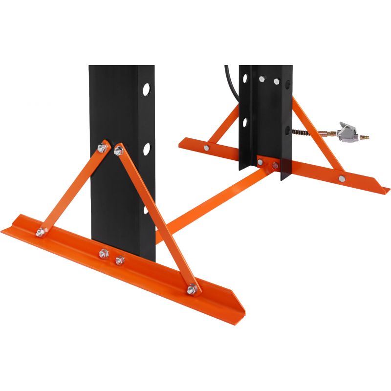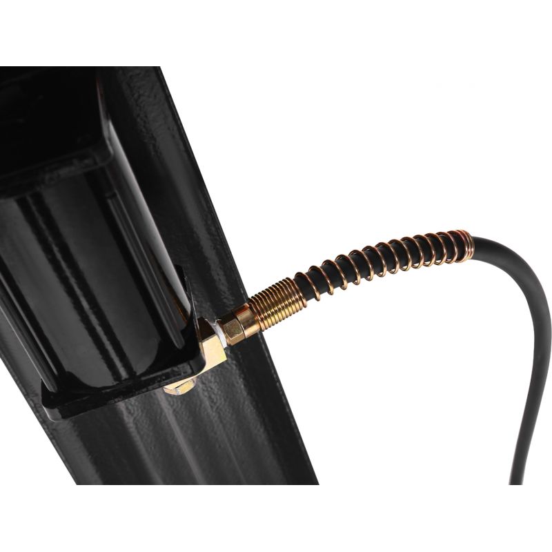 Urządzenie wyposażone jest w wytrzymały wąż hydrauliczny zakończony szybkozłączką, co umożliwia szybkie i wygodne podłączenie układu oraz zwiększa komfort użytkowania. Dodatkowo prasa posiada czytelny manometr, który pozwala na bieżąco kontrolować i mierzyć siłę nacisku, zapewniając precyzję oraz bezpieczeństwo podczas pracy.