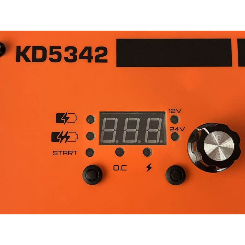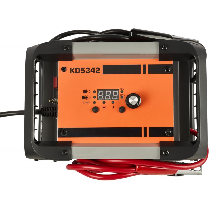 Model KD5342 wykorzystuje technologię inwerterową o wysokiej efektywności energetycznej, sięgającej do 90%. Ładowarka oferuje 8-stopniowy system ochronny, który zabezpiecza akumulator oraz samo urządzenie przed przeciążeniem, zwarciem, przegrzaniem i innymi niepożądanymi zjawiskami. Automatyczne wykrywanie napięcia zapewnia natychmiastowe dostosowanie pracy do akumulatorów 12 V lub 24 V, a funkcja wspomagania rozruchu pozwala uruchomić pojazd nawet przy mocno rozładowanym akumulatorze.