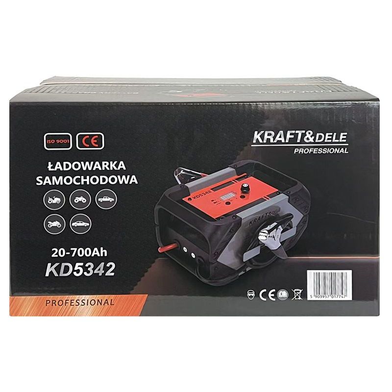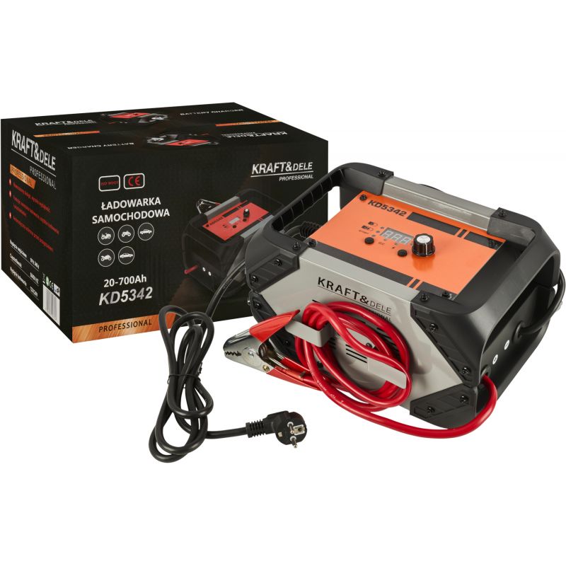 KD5342 to zaawansowana ładowarka samochodowa stworzona przez markę KRAFT&DELE z myślą o pojazdach wymagających szybkiego, bezpiecznego i inteligentnego ładowania akumulatorów. Dzięki dużej wydajności oraz automatycznemu dopasowaniu parametrów ładowania urządzenie idealnie sprawdzi się w samochodach osobowych, ciężarówkach, motocyklach, łodziach oraz maszynach użytkowych.