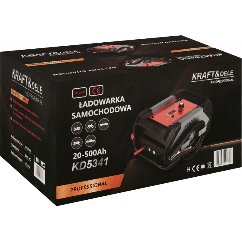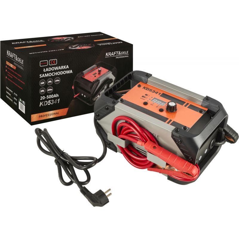 KD5341 to nowoczesna ładowarka samochodowa marki KRAFT&DELE, zaprojektowana do szybkiego i inteligentnego ładowania akumulatorów w pojazdach osobowych, SUV-ach oraz motocyklach. Dzięki aawansowanej technologii inwerterowej urządzenie pracuje z wydajnością do 90%, zapewniając stabilne i bezpieczne uzupełnianie energii w akumulatorach o pojemności od 20 do 500 Ah.