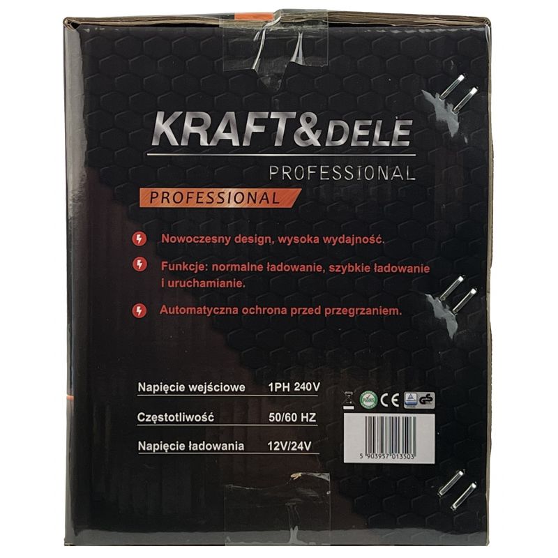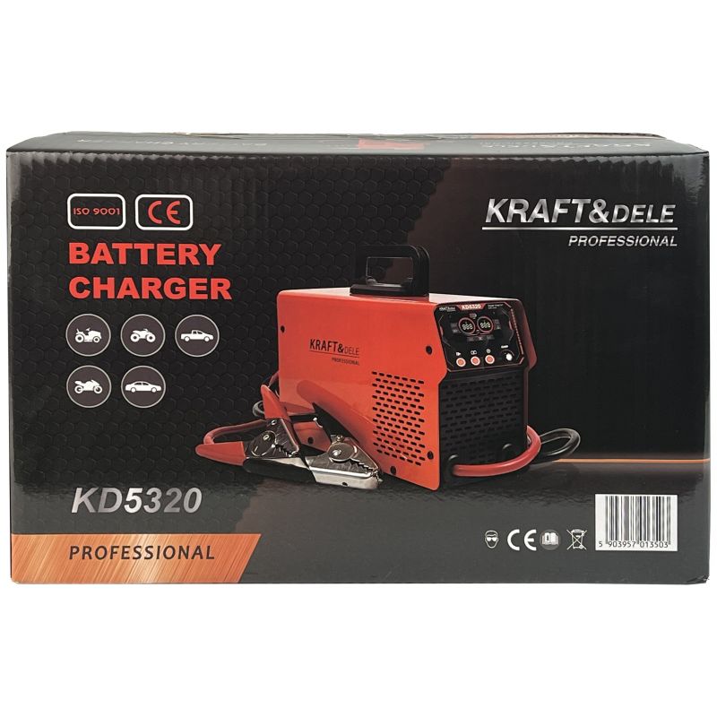 KD5320 marki KRAFT&DELE to nowoczesny prostownik z funkcją rozruchu, przeznaczony do ładowania akumulatorów 12V oraz 24V z autodetekcją napięcia systemu. Urządzenie umożliwia zarówno standardowe ładowanie, jak i wspomaganie rozruchu pojazdów mechanicznych oraz maszyn z silnikami benzynowymi i diesla.