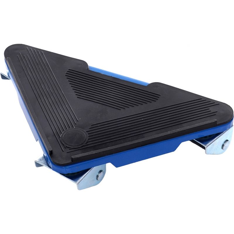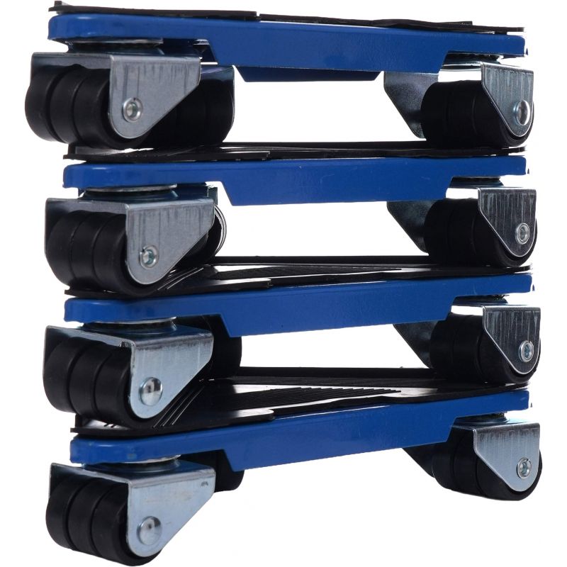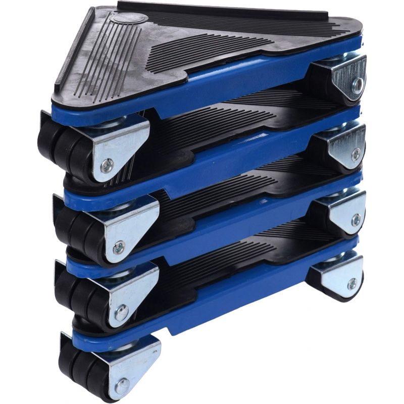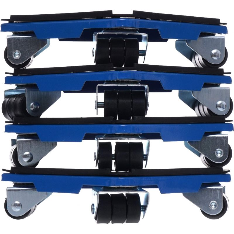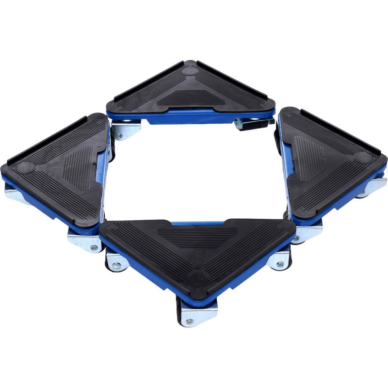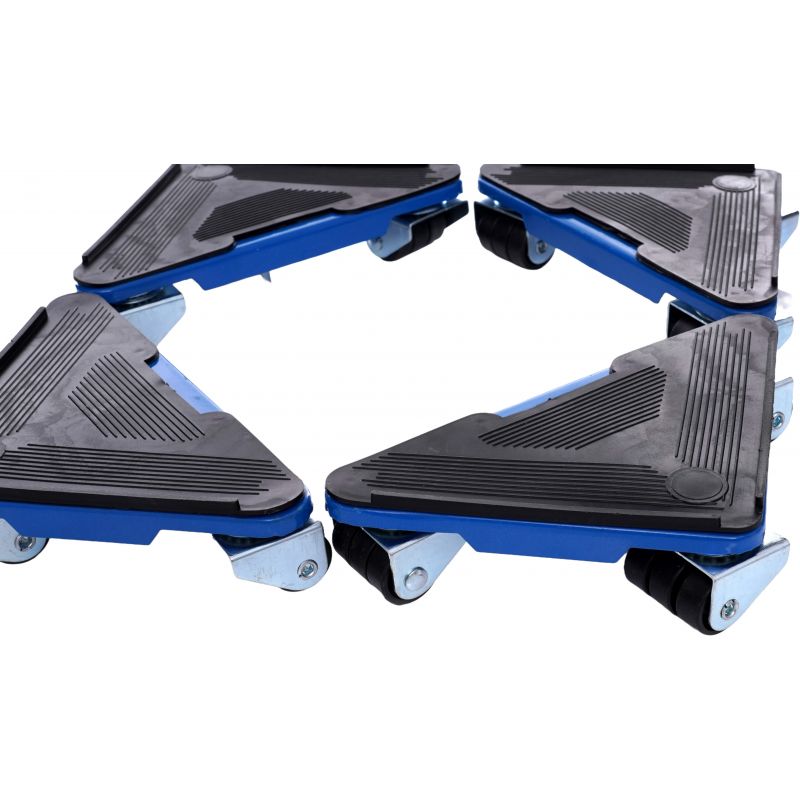 Zestaw wyposażony jest w solidne podstawki z kółkami oraz stalową dźwignię, która umożliwia łatwe podniesienie mebla i wsunięcie pod niego platform transportowych. Antypoślizgowa powierzchnia z gumy zabezpiecza transportowany ładunek przed przesuwaniem się i chroni jego krawędzie. Obrotowe kółka zapewniają płynne przemieszczanie w dowolnym kierunku, co znacznie zwiększa komfort użytkowania.