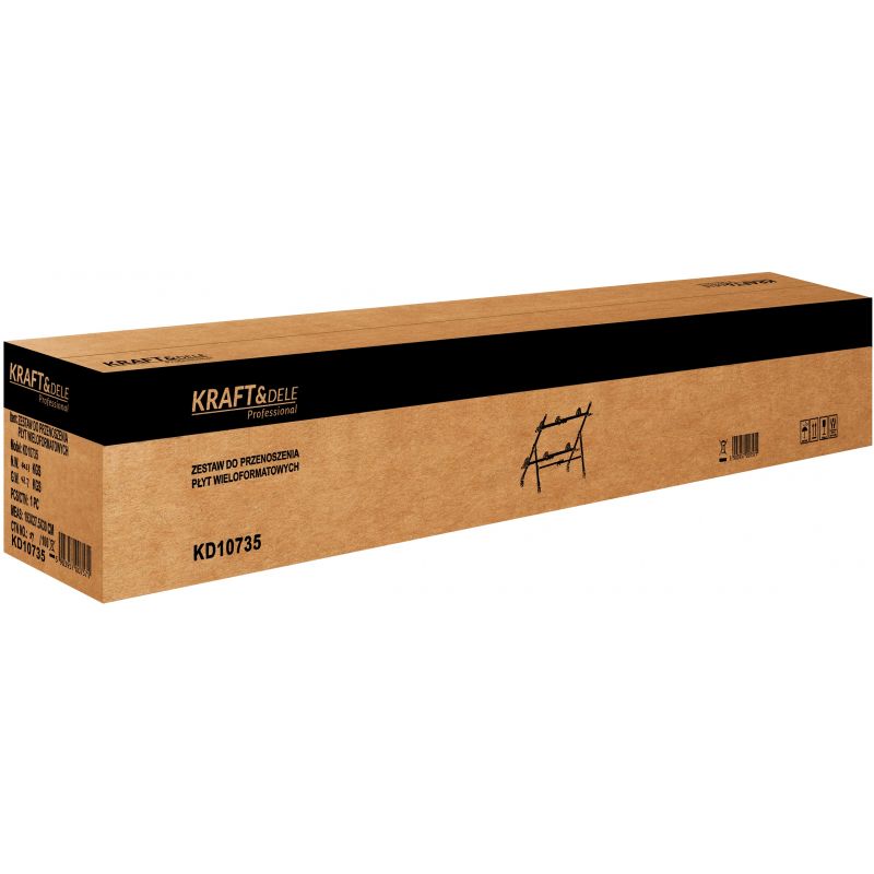 KD10735 to profesjonalny zestaw do przenoszenia płytek ceramicznych oraz szyb dużego formatu marki KRAFT&DELE, zaprojektowany z myślą o bezpiecznym i wygodnym transporcie elementów o znacznych rozmiarach. Urządzenie umożliwia przenoszenie materiałów o długości od 160 cm do 360 cm, co czyni je idealnym rozwiązaniem dla glazurników oraz ekip budowlanych realizujących wymagające projekty.
