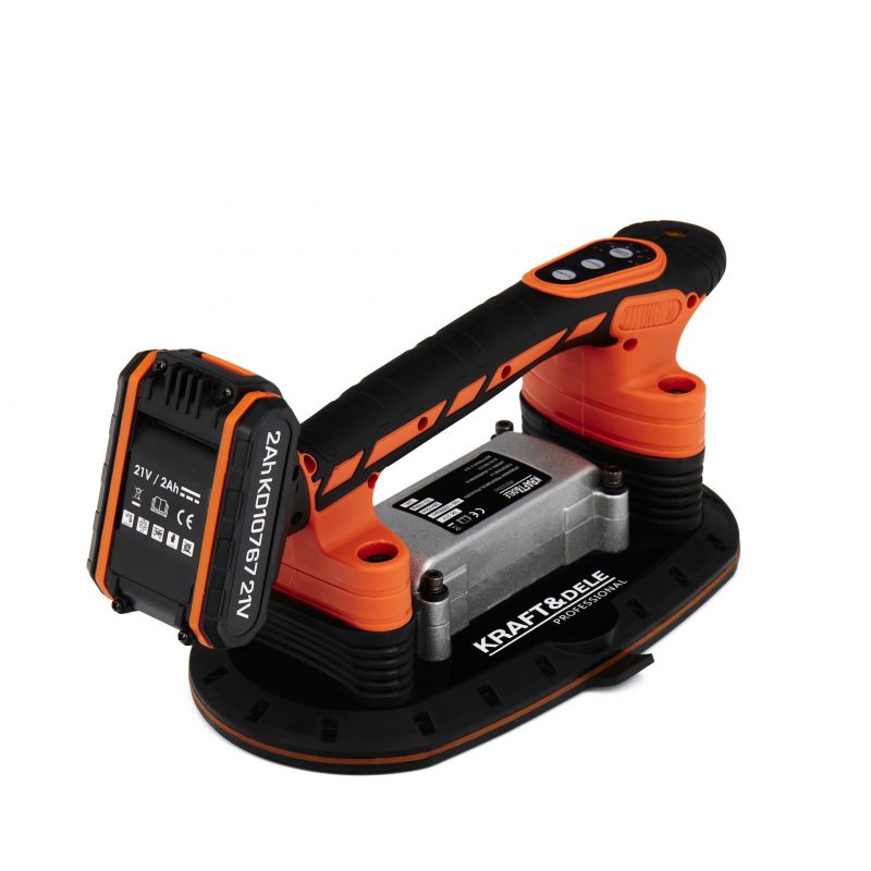Bezprzewodowa przyssawka wibrująca do układania płytek polskiej marki Kraft&Dele model KD10767 to niezastąpione narzędzie przy pracach glazurniczych. Umożliwia łatwe i precyzyjne ustawienie płytek dzięki mocnej przyssawce, która pozwala na podnoszenie obiektów o wadze do 150 kg.