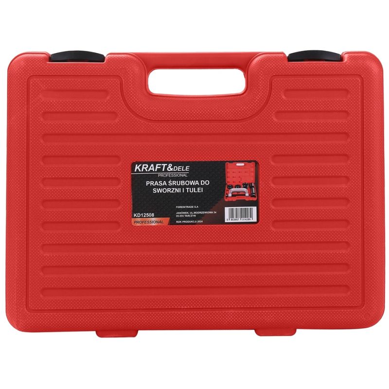 KD12508 to profesjonalna prasa śrubowa marki KRAFT&DELE, zaprojektowana do precyzyjnego montażu i demontażu sworzni oraz tulei. Dzięki solidnej konstrukcji w kształcie litery C oraz wysokiej jakości wykonaniu zestaw doskonale sprawdzi się zarówno w profesjonalnym warsztacie, jak i w pracach serwisowych wykonywanych w garażu domowym.