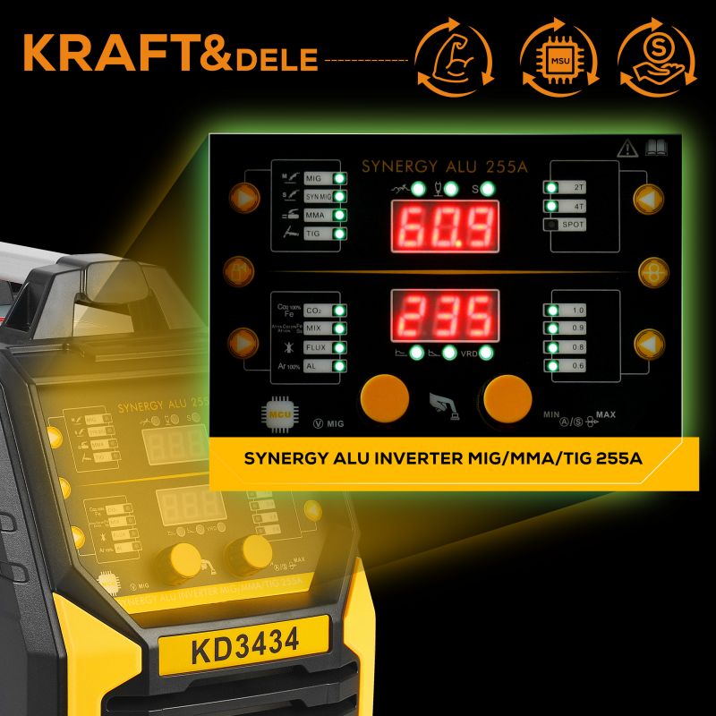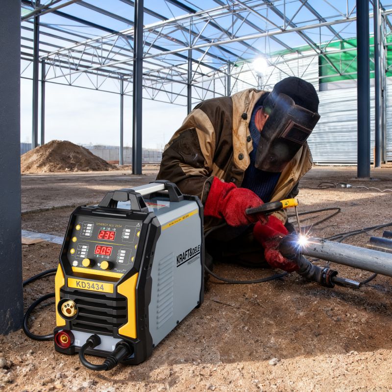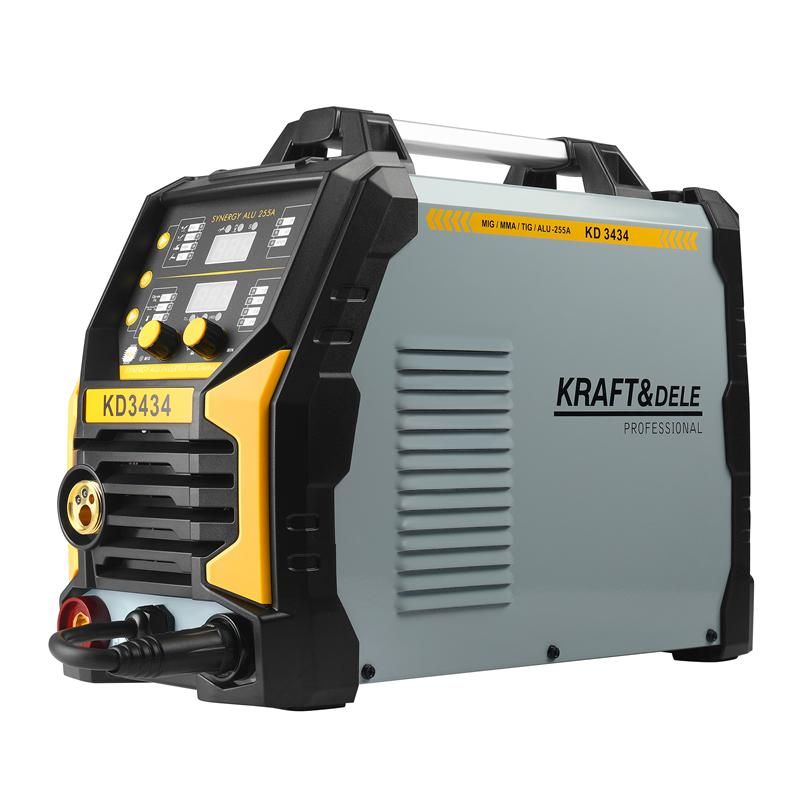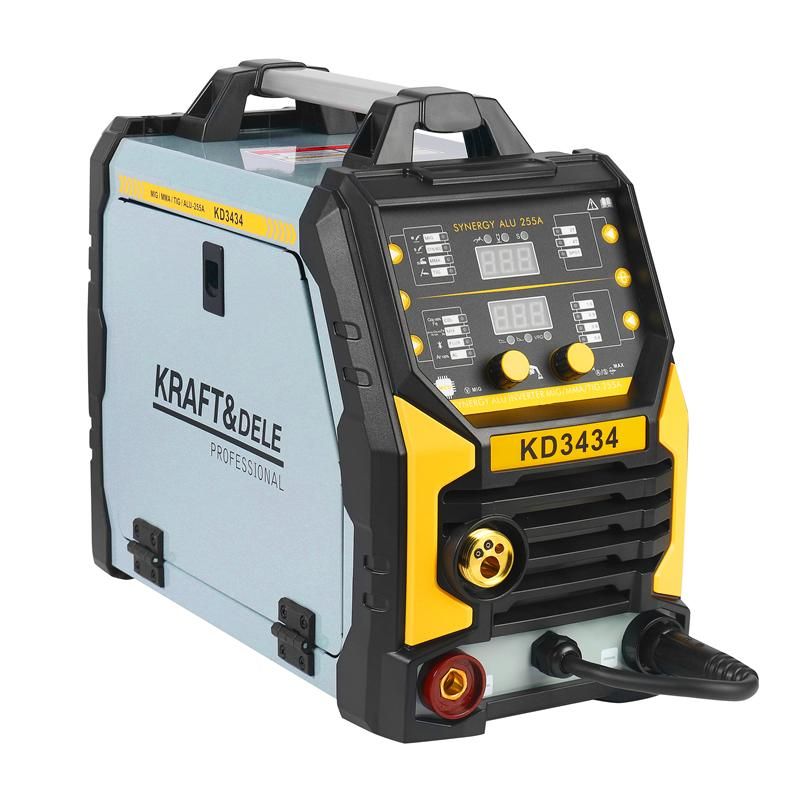 Spawarka inwertorowa KD3434 to wielofunkcyjne urządzenie, które obsługuje spawanie metodami MIG Flux, MMA oraz Tiglift. Dzięki temu sprawdzi się zarówno w profesjonalnych warsztatach, jak i dla majsterkowiczów. Urządzenie cechuje się solidną konstrukcją oraz łatwą obsługą, co pozwala na precyzyjne i efektywne spawanie różnych materiałów.