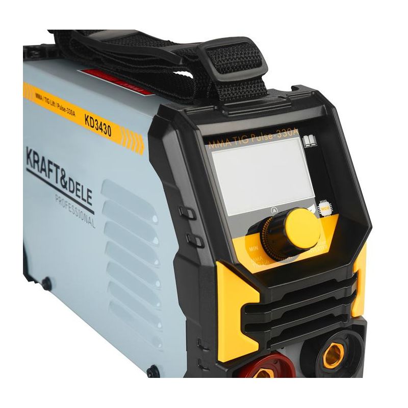Model KD3430 pracuje przy standardowym napięciu 230V 50Hz, oferując zakres spawania od 20 do 330A. Obsługuje elektrody o średnicy od 1,6 do 3,2 mm, a jego sprawność wynosi 60%. Klasa izolacji F oraz stopień ochrony IP21S zapewniają bezpieczeństwo użytkowania nawet w trudniejszych warunkach pracy.