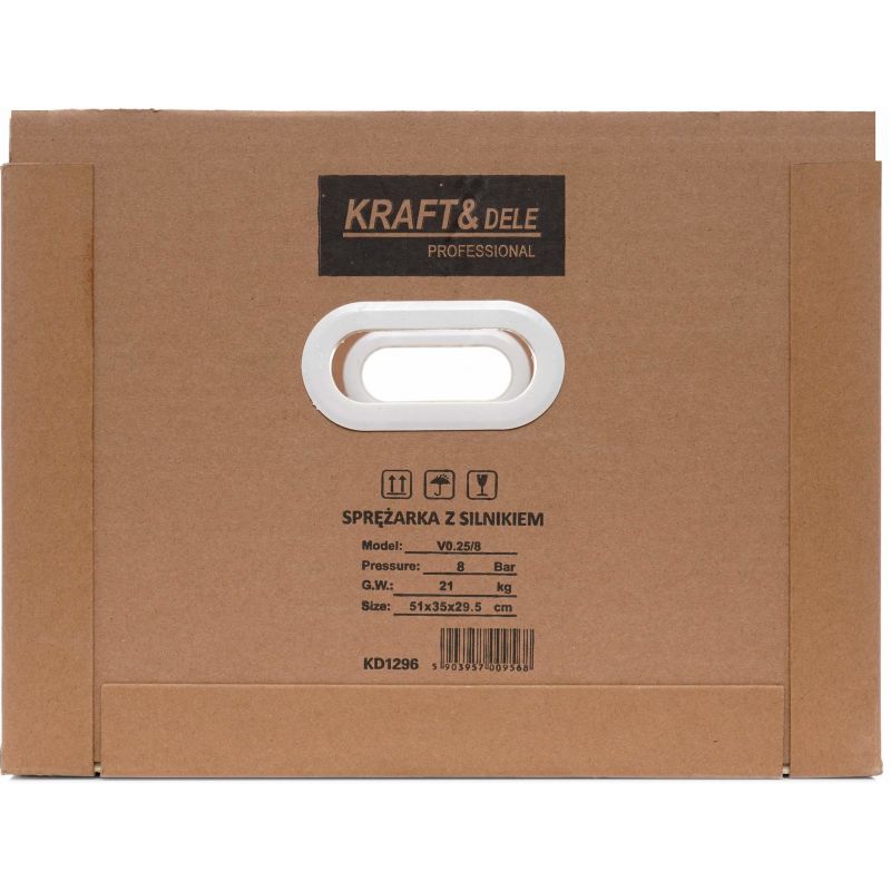 KD1296 to wydajna sprężarka powietrza marki KRAFT&DELE przeznaczona do pracy w warsztacie, garażu oraz podczas różnego rodzaju prac serwisowych. Dzięki wysokiej wydajności sprężania urządzenie doskonale sprawdza się podczas obsługi narzędzi pneumatycznych, pompowania, przedmuchiwania czy innych prac wymagających stabilnego źródła sprężonego powietrza.