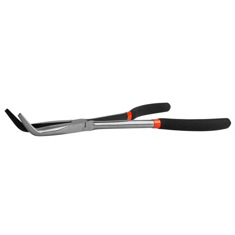 KD10816 to solidne i precyzyjne szczypce długie wygięte pod kątem 45°, idealne do pracy w trudno dostępnych miejscach. Sprawdzą się zarówno w warsztacie, garażu, jak i podczas prac serwisowych czy modelarskich. Dzięki ergonomicznym uchwytom pokrytym miękką, antypoślizgową gumą zapewniają pewny chwyt i wysoki komfort użytkowania.
