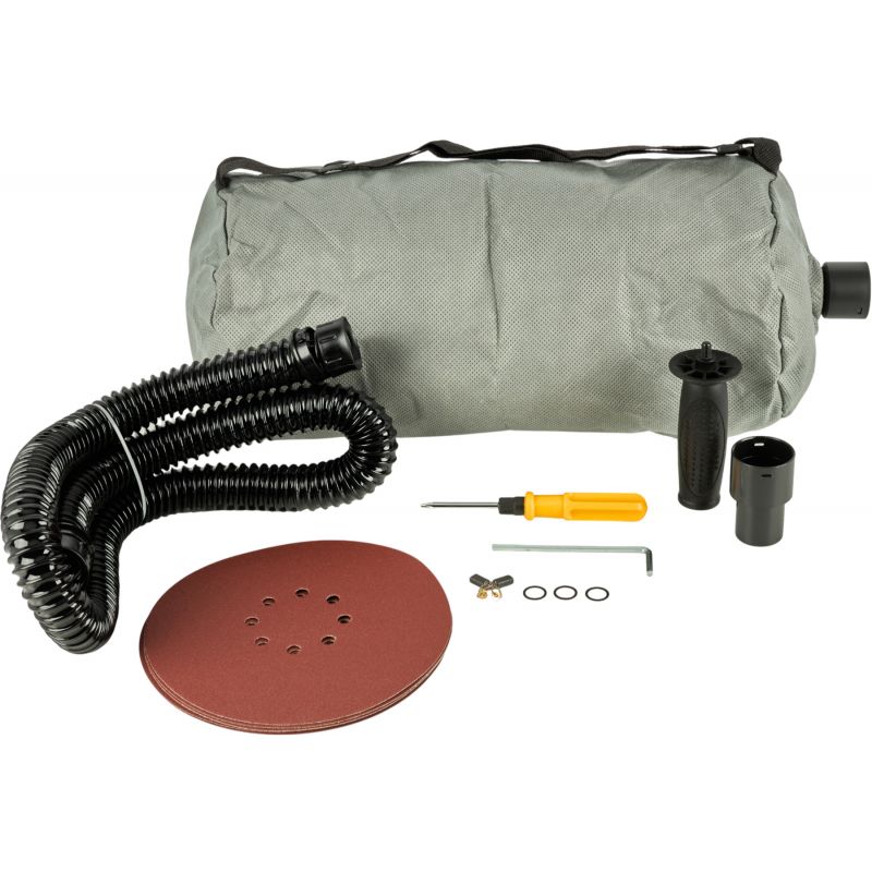 Szlifierka wyposażona jest w system odprowadzania pyłu, który umożliwia pracę zarówno z odkurzaczem przemysłowym, jak i bezpośrednio do worka, bez konieczności podłączenia odkurzacza. Pokrętło kontroli siły ssania pozwala dopasować poziom odpylania, a papiery ścierne z otworami zwiększają efektywność usuwania pyłu.