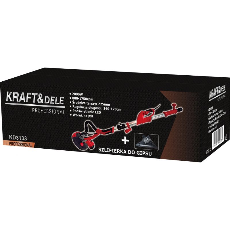 KD3133 to wydajna szlifierka do gipsu marki KRAFT&DELE, zaprojektowana z myślą o szlifowaniu ścian i sufitów, również w trudno dostępnych miejscach oraz na większych wysokościach. Dzięki teleskopowej konstrukcji oraz dużej średnicy tarczy urządzenie umożliwia szybkie i wygodne wyrównywanie powierzchni.