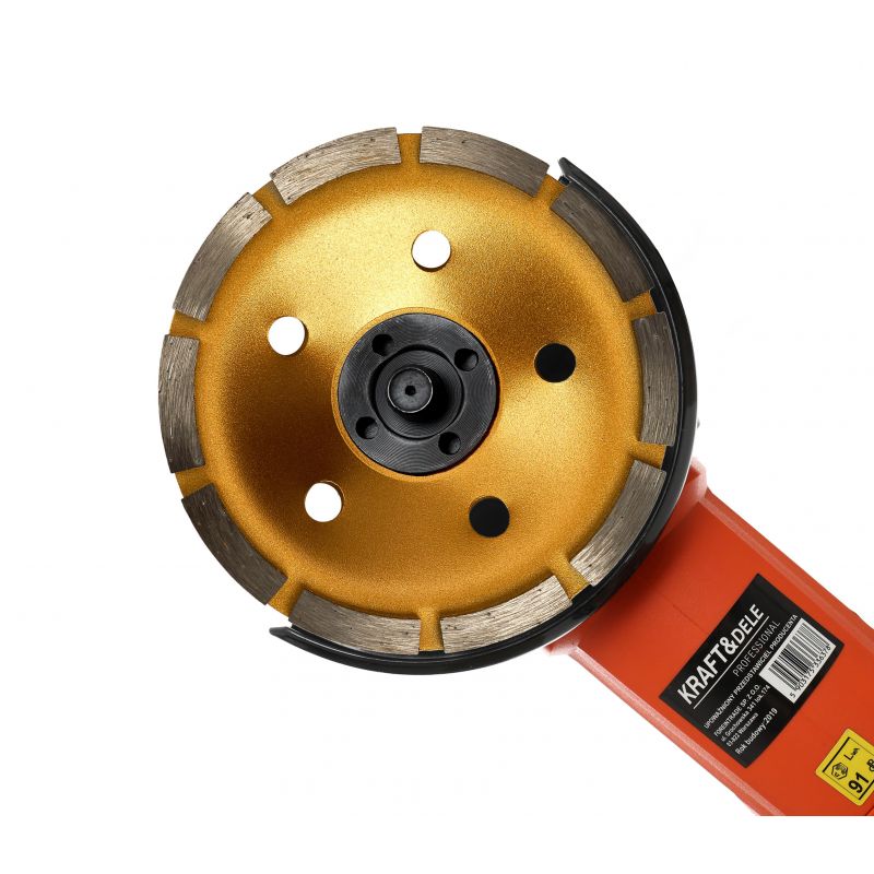 Cechy: • Wysoka jakość szlifowania na różnych powierzchniach. • Trwałe i wydajne wykorzystanie diamentowego segmentu. • Uniwersalne zastosowanie na różnych materiałach, w tym ceramika, beton, kamień, cegła, i wiele innych. • Doskonale dopasowane do systemów odpylających. • Optymalne chłodzenie dzięki otworom wentylacyjnym. • Intensywne wyrównywanie powierzchni, zwłaszcza na narożnikach i w miejscach trudno dostępnych. • Długi okres gwarancji - 12 miesięcy. • Produkt profesjonalny marki KRAFT&DELE. | Skład zestawu • TARCZA SZLIFIERSKA DIAMENTOWA SEGMENTOWA |