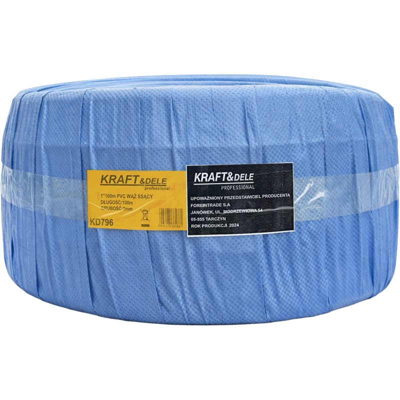 Wąż ssawny KD796 marki KRAFT&DELE o średnicy 1" i długości 100 metrów to solidne i wszechstronne rozwiązanie przeznaczone do transportu wody, powietrza oraz lekkich chemikaliów. Sprawdzi się w przemyśle, rolnictwie, instalacjach sanitarnych oraz wszędzie tam, gdzie wymagana jest trwałość i elastyczność przewodu.