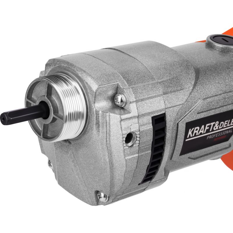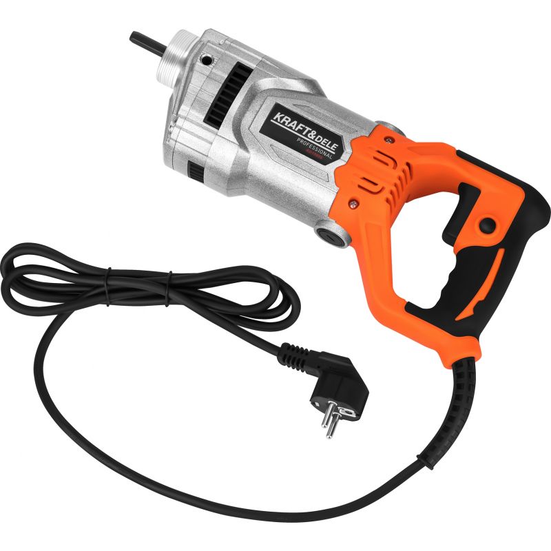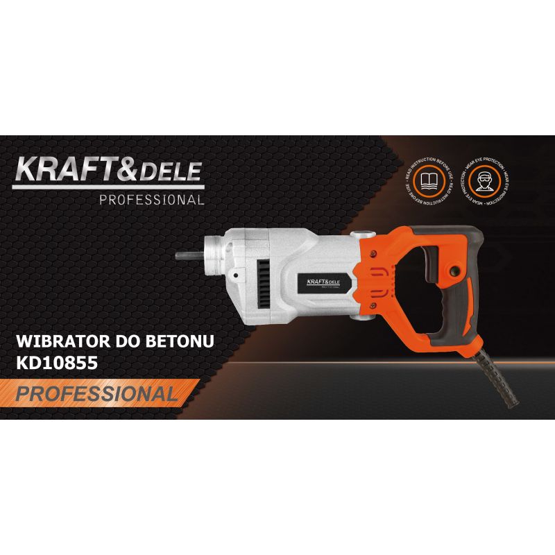 Model KD10855 wyposażony został w silnik o mocy 1300W, który zapewnia wydajną pracę nawet przy wymagających zadaniach budowlanych. Prędkość obrotowa na poziomie 4000 obr/min pozwala na efektywne zagęszczanie betonu przy wykonywaniu stropów, posadzek, fundamentów oraz innych elementów konstrukcyjnych. Dodatkowym udogodnieniem jest blokada pracy ciągłej, która zwiększa komfort użytkowania i eliminuje konieczność ciągłego przytrzymywania włącznika podczas pracy. Wibrator dodatkowo został wyposażony w ergonomiczny uchwyt, który pozytywnie wpływa na wygode i komfort pracy.