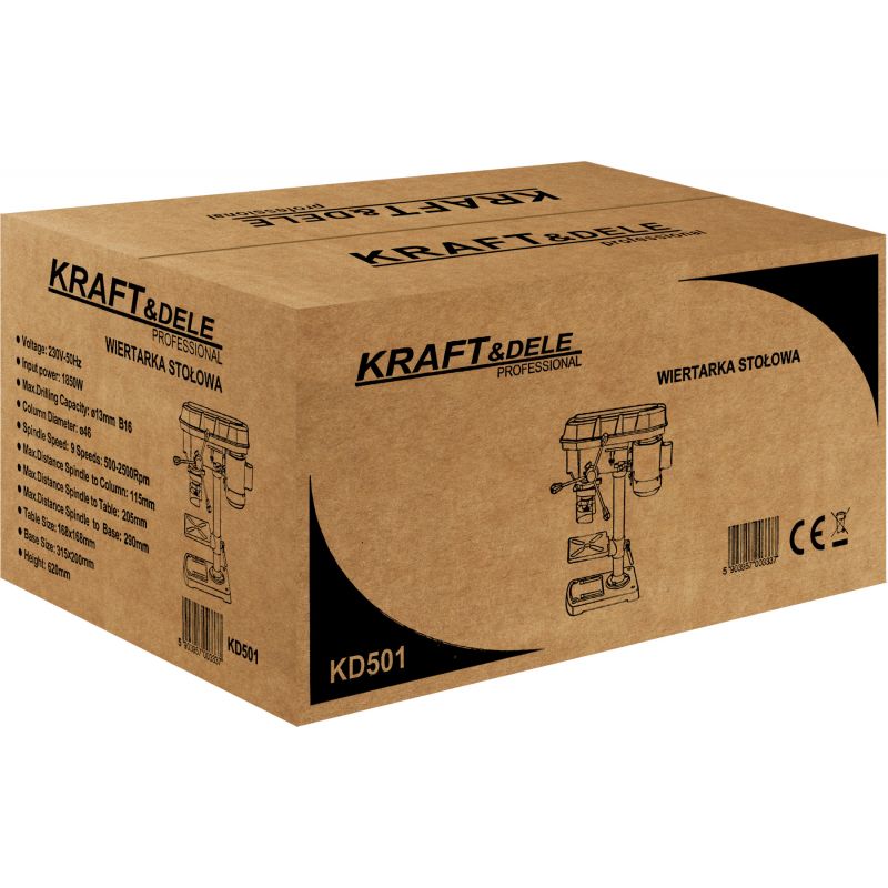 Wiertarka stołowa / kolumnowa marki Kraft&Dele przeznaczona jest do wiercenia otworów w różnych materiałach, takich jak drewno czy metal. Idealnie sprawdzi się w warsztatach szkoleniowych, stolarskich oraz w przydomowym garażu.