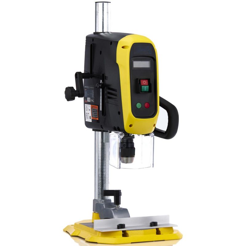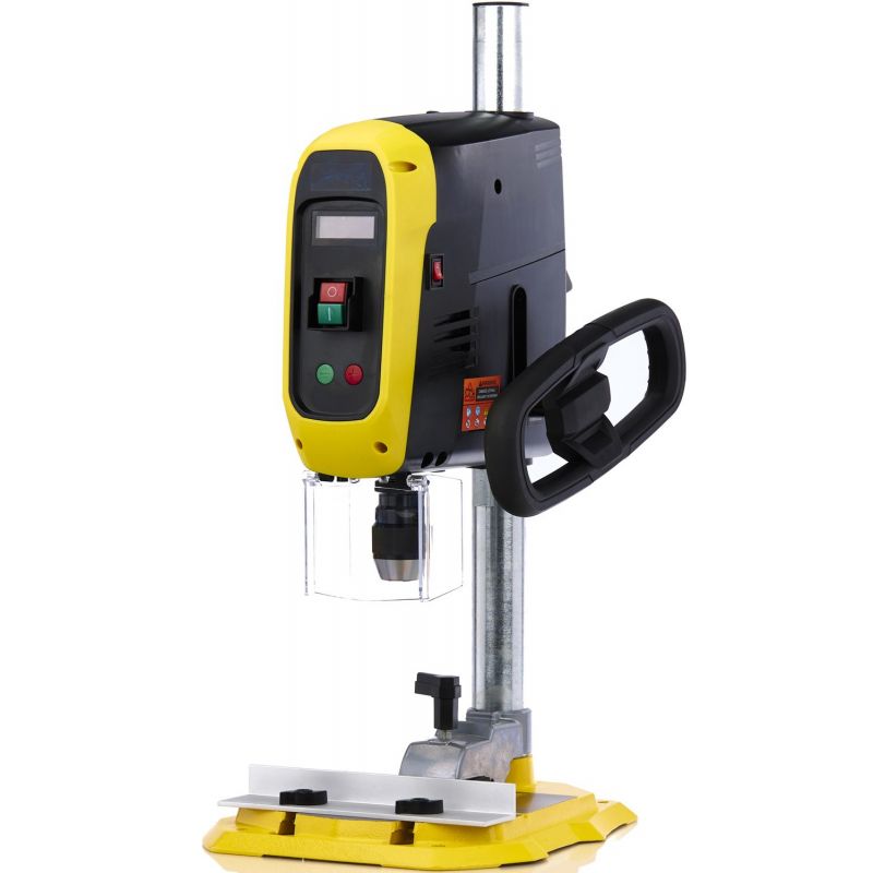 Model został wyposażony w niezawodny silnik o mocy 1900W, który gwarantuje płynną pracę wrzeciona. Regulacja prędkości w zakresie 500–2600 Rpm umożliwia dopasowanie parametrów pracy do rodzaju obrabianego materiału. Wyświetlacz LCD pozwala na wygodną kontrolę ustawień, a solidna konstrukcja z dużą powierzchnią stołu wiertarskiego zapewnia stabilność podczas wiercenia. Funkcja ogranicznika głębokości oraz regulacja wysokości podstawy zwiększają dokładność i komfort użytkowania.