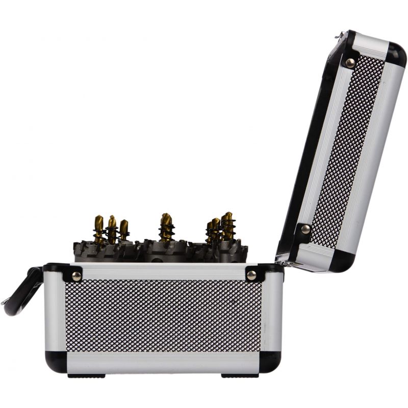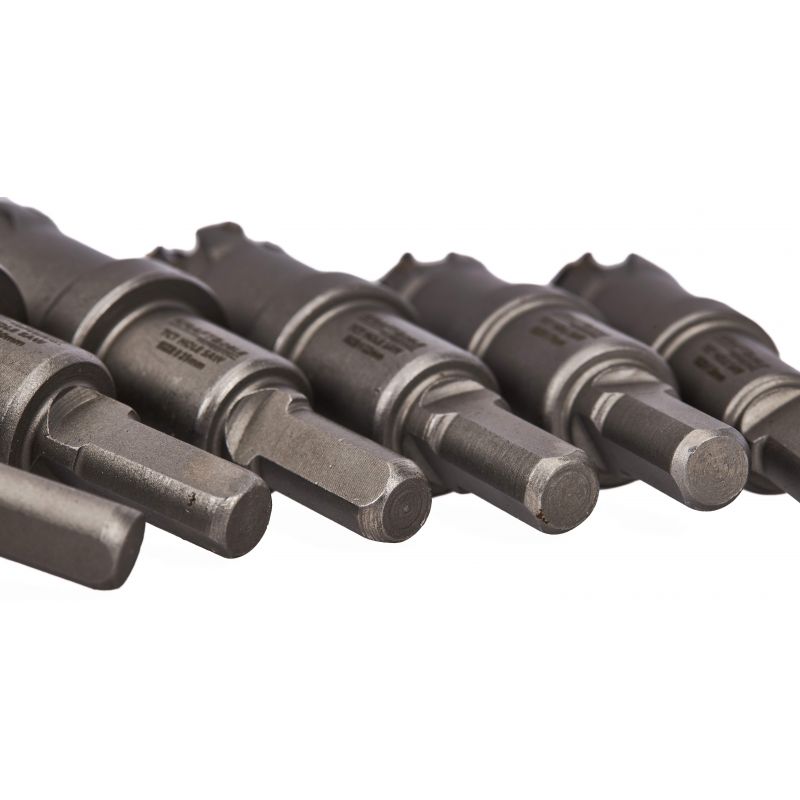 Otwornice zostały wyposażone w wiertła prowadzące, które zwiększają dokładność wiercenia oraz ułatwiają rozpoczęcie pracy. Dodatkowa sprężyna zamocowana na wiertle prowadzącym pozwala na szybkie usuwanie wiórów, co znacząco poprawia komfort pracy. Zestaw sprawdzi się w warsztatach, pracach instalacyjnych oraz serwisowych – szczególnie wśród monterów, hydraulików i elektryków.