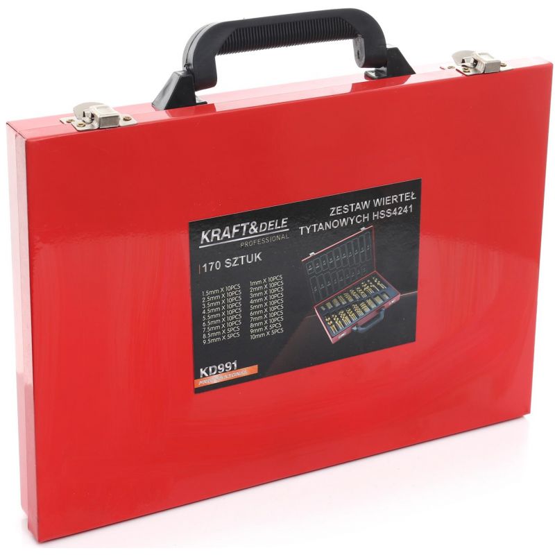 Wiertła do metalu; wiertła HSS; wiertła tytanowe; zestaw wierteł 170 szt; wiertła DIN338; komplet wierteł w walizce; wiertła do stali; wiertła warsztatowe; KD991;
