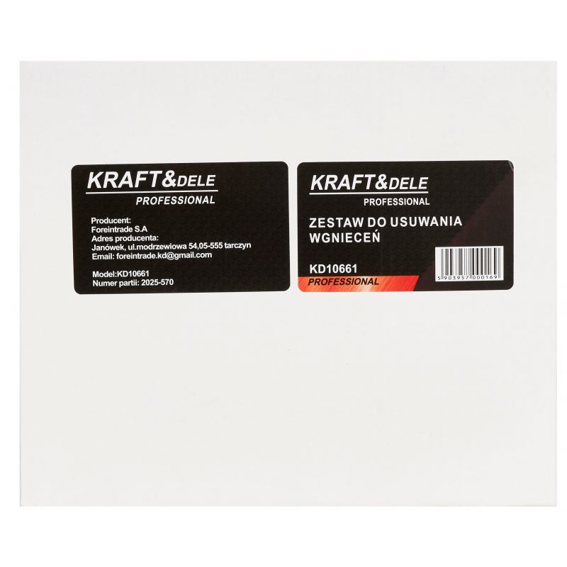 Urządzenie do usuwania wgnieceń karoserii samochodowej marki Kraft&Dele model KD10661. Zestaw niezbędny w każdym garażu! Oferuje możliwość łatwego i skutecznego usuwania wgniotek.
