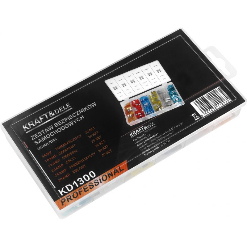 KD1300 to praktyczny i uniwersalny zestaw bezpieczników samochodowych przeznaczony do większości modeli pojazdów. Idealnie sprawdzi się zarówno w profesjonalnych warsztatach, jak i w przydomowych garażach, zapewniając szybkie i bezproblemowe zabezpieczenie instalacji elektrycznej.