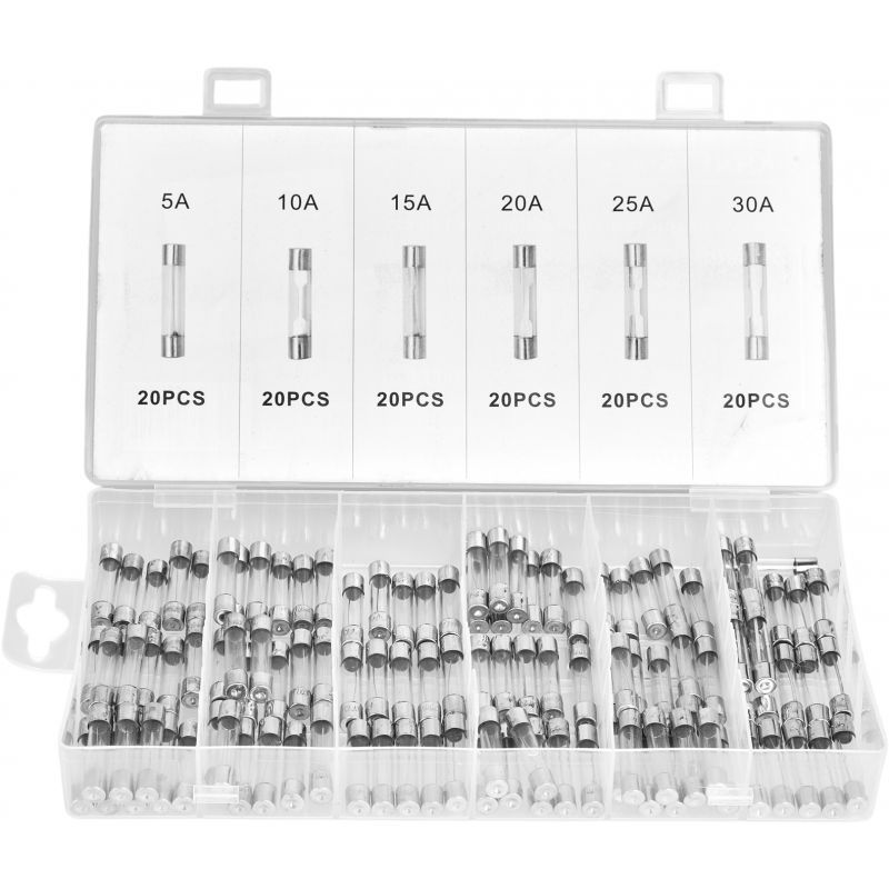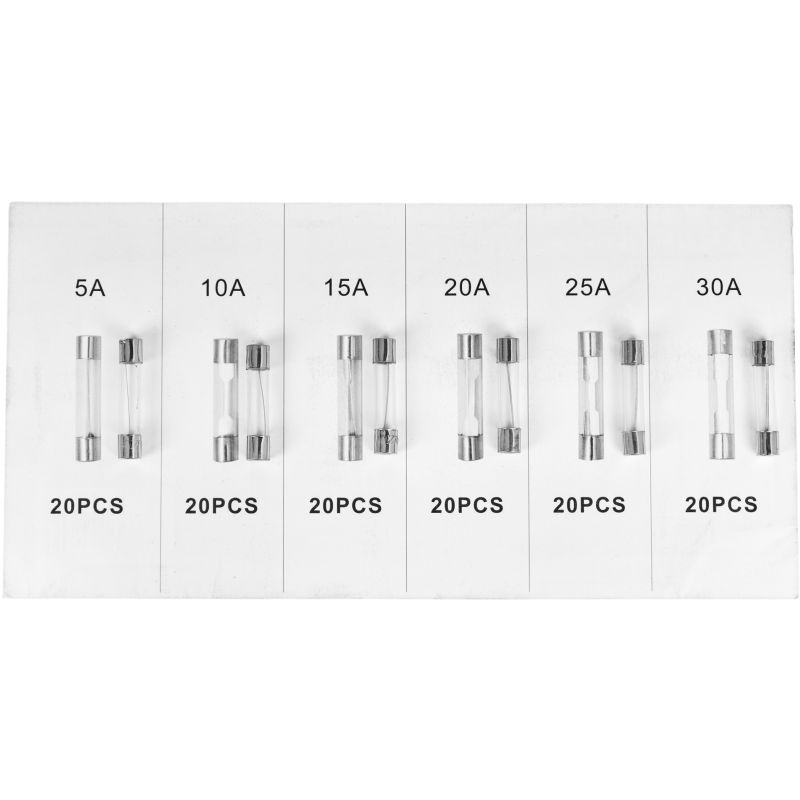 Bezpieczniki szklane; bezpieczniki 5-30A; zestaw bezpieczników elektrycznych; bezpieczniki rurowe; bezpieczniki do urządzeń elektrycznych; komplet bezpieczników 120 szt;