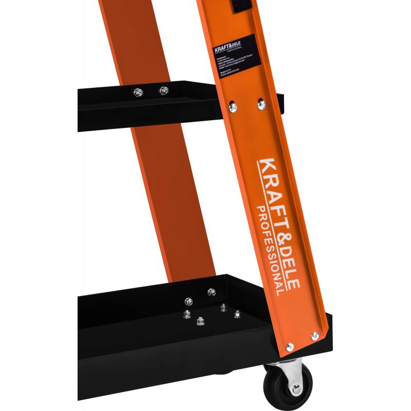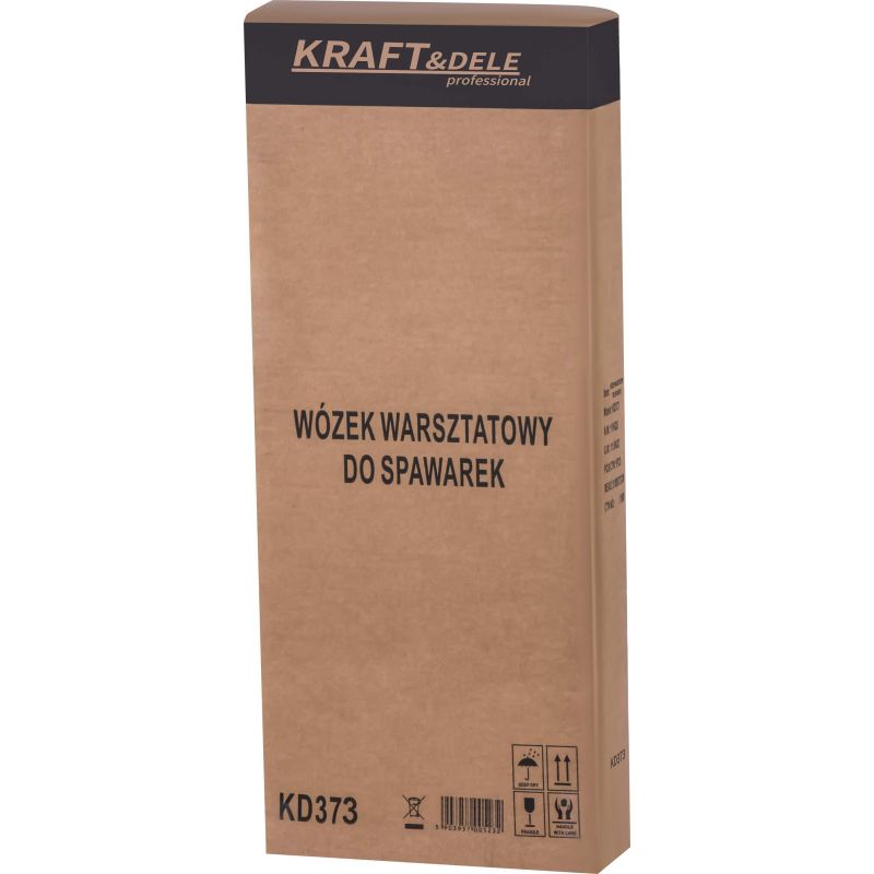 Model KD373 wyposażony został w wydłużoną górną półkę oraz dwie dodatkowe półki umożliwiające wygodne rozmieszczenie narzędzi, przewodów i akcesoriów spawalniczych. Solidna konstrukcja wykonana z wytrzymałej stali zapewnia stabilność oraz nośność do 75 kg. Duże tylne koła oraz mniejsze przednie kółka umożliwiają łatwe manewrowanie wózkiem nawet przy większym obciążeniu, dzięki czemu sprzęt można wygodnie przemieszczać w obrębie warsztatu.