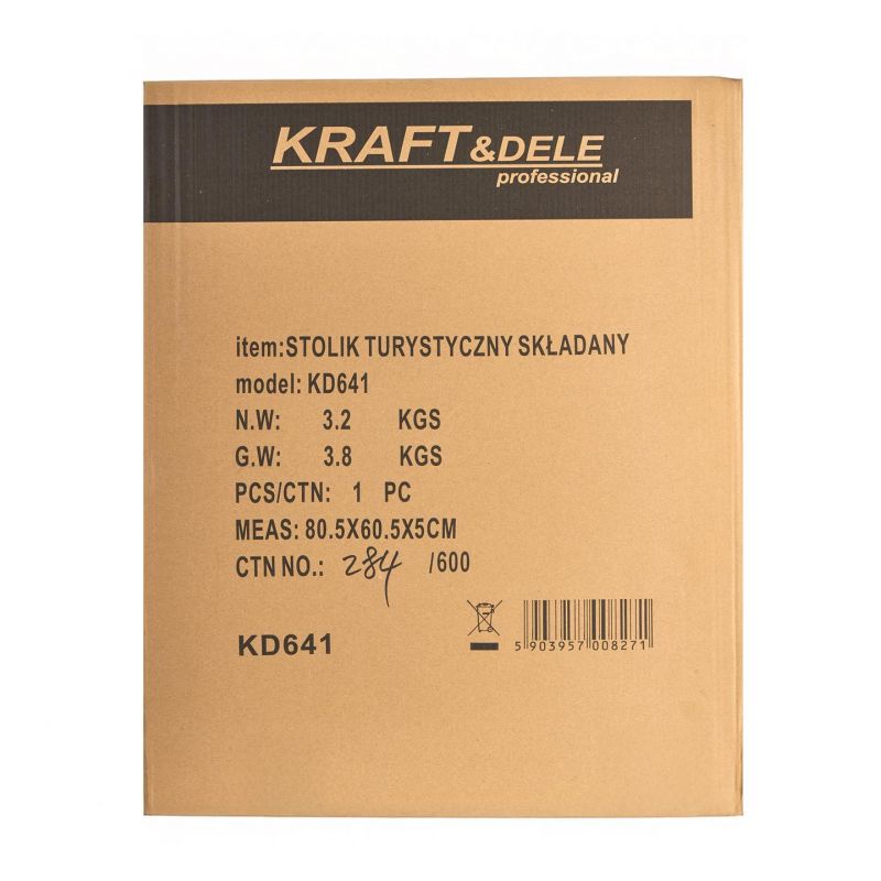Praktyczny składany stół warsztatowy / stolik turystyczny marki Kraft&Dele model KD641 o wymiarach blatu roboczego 80 x 60 cm. Dzięki funkcji składania idealnie sprawdzi się na wypady poza miasta, możemy go także zabrać na kemping lub pod namiot. Wykorzystywany także jako stolik warsztatowy do drobnych prac.
