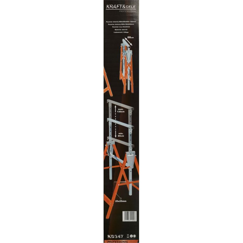 KD347 to solidna i funkcjonalna kobyłka warsztatowa marki KRAFT&DELE, zaprojektowana z myślą o wygodnej i bezpiecznej pracy w warsztacie, garażu oraz na budowie. Dzięki stabilnej konstrukcji wykonanej z wytrzymałej stali stojak zapewnia pewne podparcie dla różnego rodzaju elementów podczas cięcia, montażu czy obróbki.