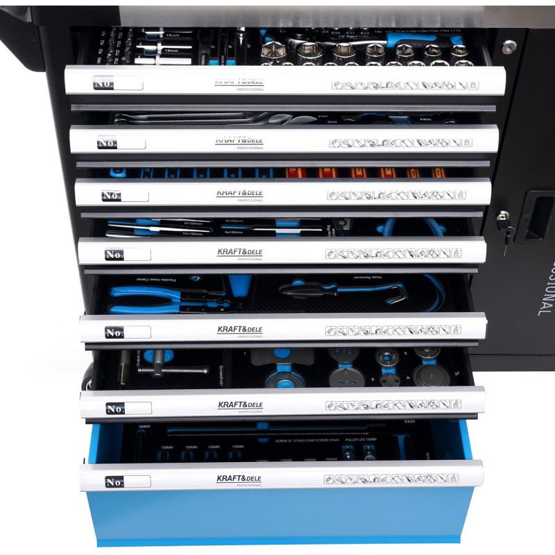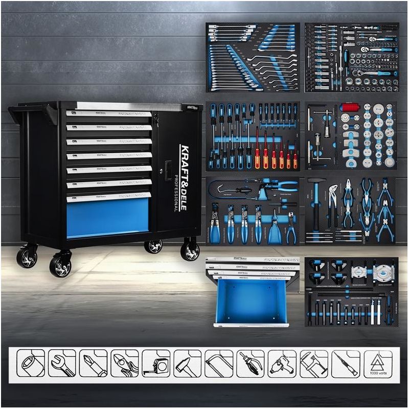 Szafka narzędziowa Kraft&Dele o oznaczeniu KD1069 to niezastąpiony produkt dla warsztatu, garażu i każdego, kto potrzebuje porządku oraz pełnego wyposażenia. W komplecie znajduje się 309 elementów wysokiej jakości, które pozwolą wykonywać różnorodne prace z precyzją i trwałością.