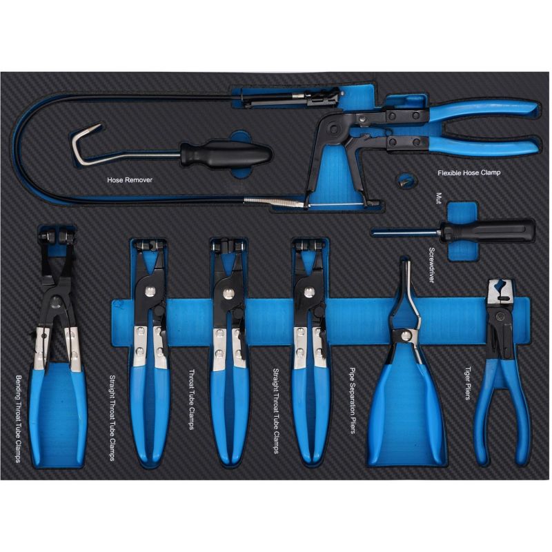 ZAWARTOŚĆ PIĄTEJ SZUFLADY | Szczypce do opasek z obrotowymi szczękami (1 sztuka) Szczypce do opasek zaciskowych z linką (1 sztuki) Szczypce wygięte do opasek zaciskowych (1 sztuka) Szczypce typu CLIC I CLIC-R ( 1 sztuka) Szczypce do opasek z obrotowymi ponacinanymi szczękami (1 sztuka) Szczypce do wąskich opasek (1 sztuka) Szczypce-ściągacz do węża Śrubokręt Specjalnie wyprofilowany, odgięty szpikulec |