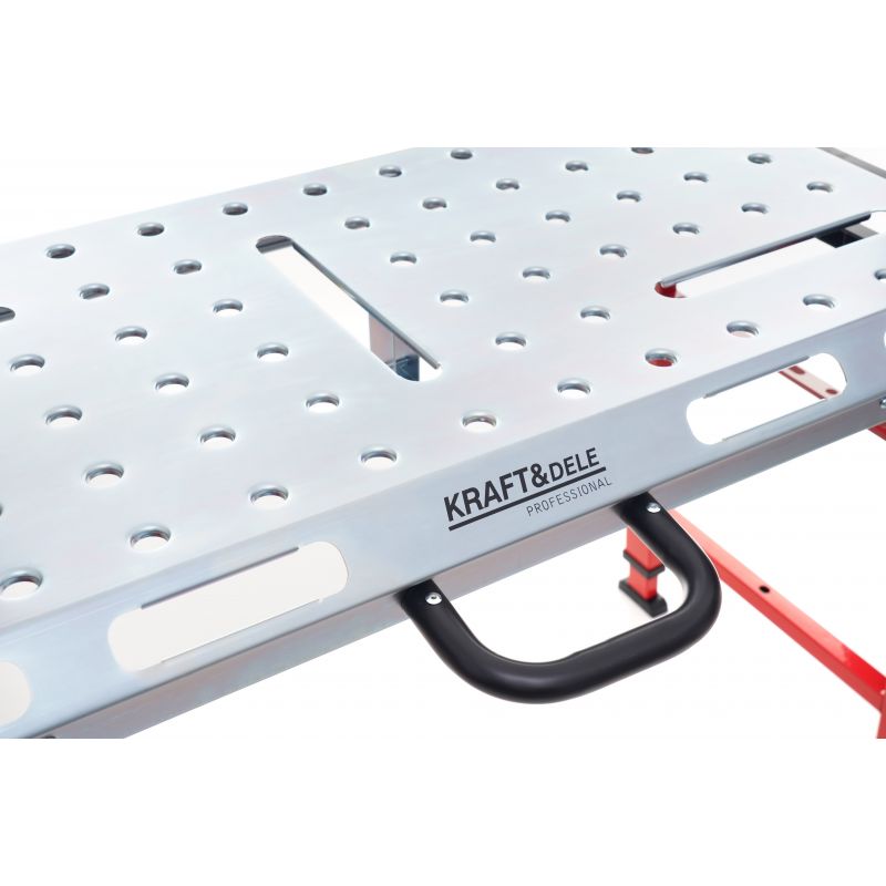 KD639 to praktyczny, składany stół spawalniczy marki Kraft&Dele, który idealnie sprawdza się podczas mobilnych prac remontowych, serwisowych oraz warsztatowych. Konstrukcja stołu umożliwia łączenie kilku modułów, dzięki czemu w łatwy sposób można uzyskać większą powierzchnię roboczą.