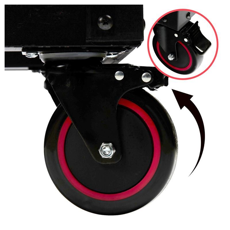 Duże kóła wyposażonye w automatyczna blokade a także hamulec zapewniający przy przemieszaniu szafy komfort bezpieczeństwa nawet na małych pochyłościach.