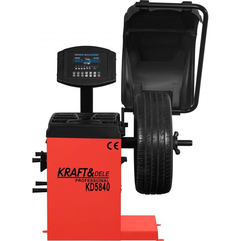 KD5840 to profesjonalna wyważarka do kół marki KRAFT&DELE przeznaczona do serwisów opon, warsztatów samochodowych oraz punktów wulkanizacyjnych. Urządzenie zapewnia wysoką precyzję pracy oraz szybkie i wygodne wyważanie kół dzięki zastosowaniu nowoczesnych rozwiązań technologicznych. Urządzenie wyposażone jest w wyświetlacz LCD, który umożliwi na proste kontrolowanie danych. Pod wyświetlaczem znajduje się panel sterowania, dzięki któremu możemy kontrolować urządzenie.