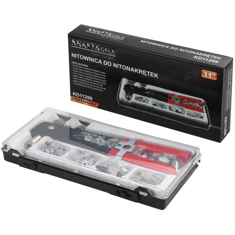KD11299 to wytrzymała i funkcjonalna nitownica ręczna do nitonakrętek marki KRAFT&DELE, przeznaczona zarówno do zastosowań profesjonalnych, jak i amatorskich. Doskonale sprawdzi się w warsztacie, garażu oraz na placu budowy, umożliwiając szybkie i precyzyjne osadzanie nitonakrętek bez konieczności wykonywania gwintu.