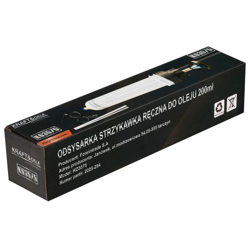 Ręczna odsysarka marki Kraft&Dele KD3575 to praktyczne i precyzyjne narzędzie przeznaczone do obsługi płynów eksploatacyjnych. Dzięki pojemności 200 ml idealnie nadaje się do odsysania lub dolewania olejów, płynów hydraulicznych czy innych cieczy technicznych ze zbiorników zewnętrznych oraz trudno dostępnych przestrzeni w maszynach i urządzeniach.