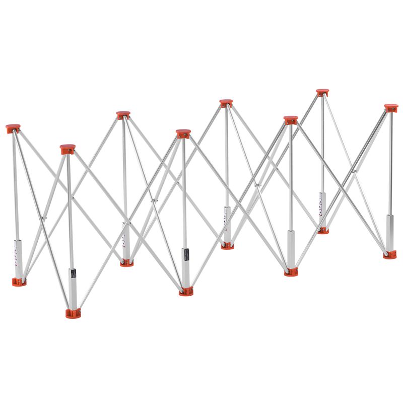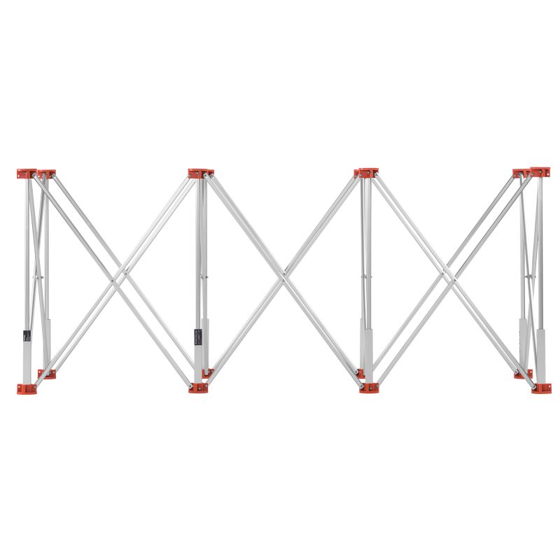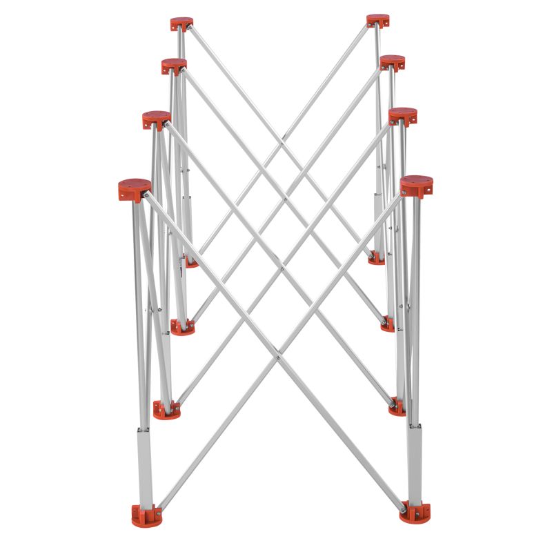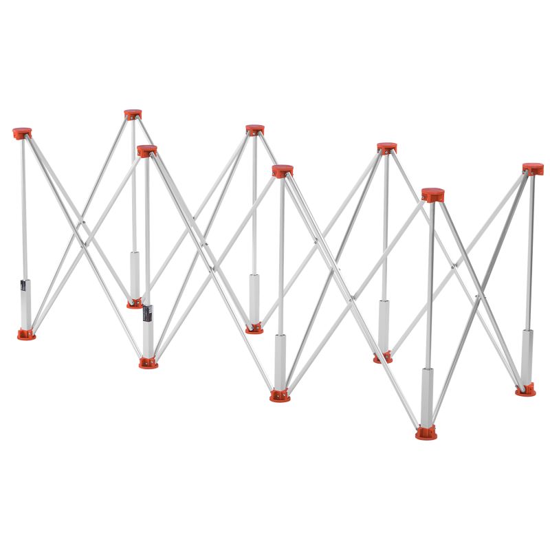 Konstrukcja stołu wykonana została z aluminium oraz wytrzymałego tworzywa sztucznego, co gwarantuje lekkość, a jednocześnie dużą trwałość i stabilność. Osiem mocnych nóg pozwala uzyskać udźwig do 800kg, a możliwość szybkiego i łatwego rozkładania sprawia, że doskonale sprawdzi się zarówno na budowie, jak i w warsztacie. W zestawie znajduje się torba transportowa, która ułatwia przechowywanie i przenoszenie stołu.