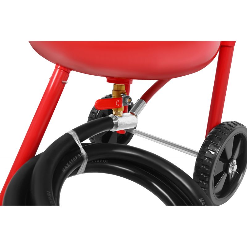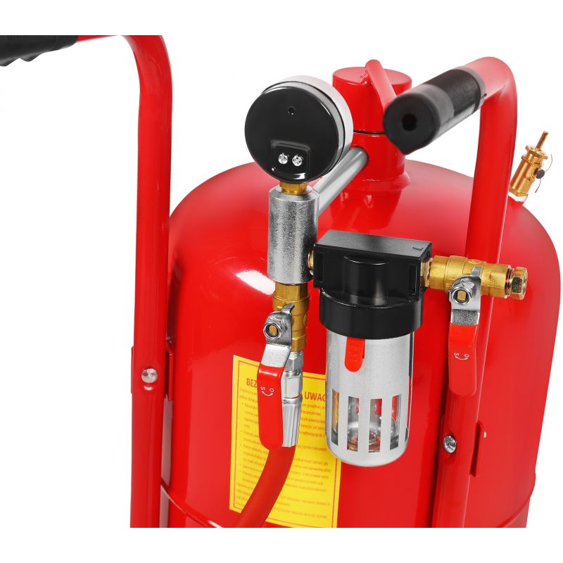 Urządzenie sprawdzi się zarówno w warsztatach, jak i w zastosowaniach profesjonalnych. Dzięki dużym kółkom transportowym łatwo przemieszczać piaskarkę, a możliwość pracy z różnymi materiałami ściernymi, od korundu po sodę i kulki szklane, zwiększa uniwersalność sprzętu.