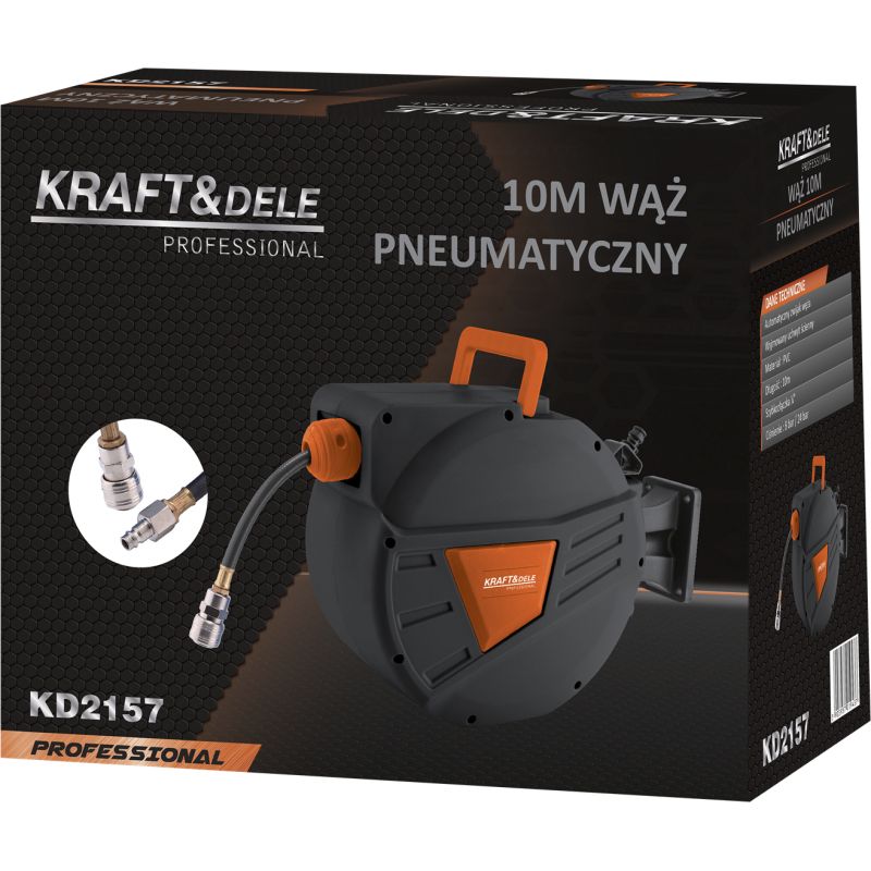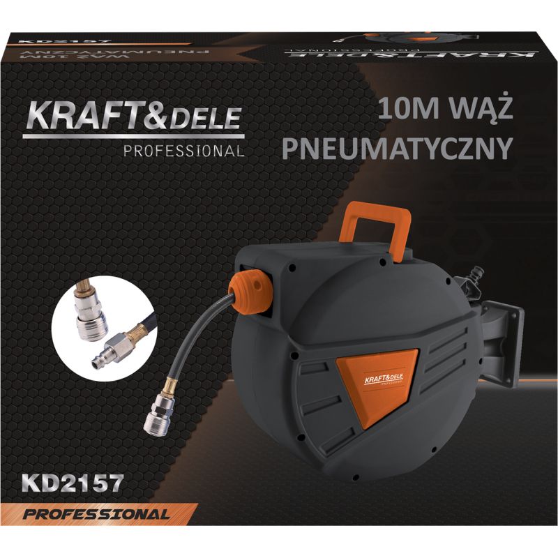 KD2157 to praktyczny wąż pneumatyczny marki KRAFT&DELE o długości 10m, umieszczony na automatycznym zwijaku, zaprojektowany do pracy ze sprężonym powietrzem. Jest to niezbędne wyposażenie każdego warsztatu, serwisu, garażu czy zakładu produkcyjnego, gdzie liczy się porządek, wygoda oraz niezawodność instalacji pneumatycznej.