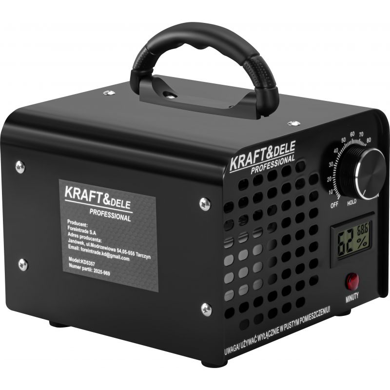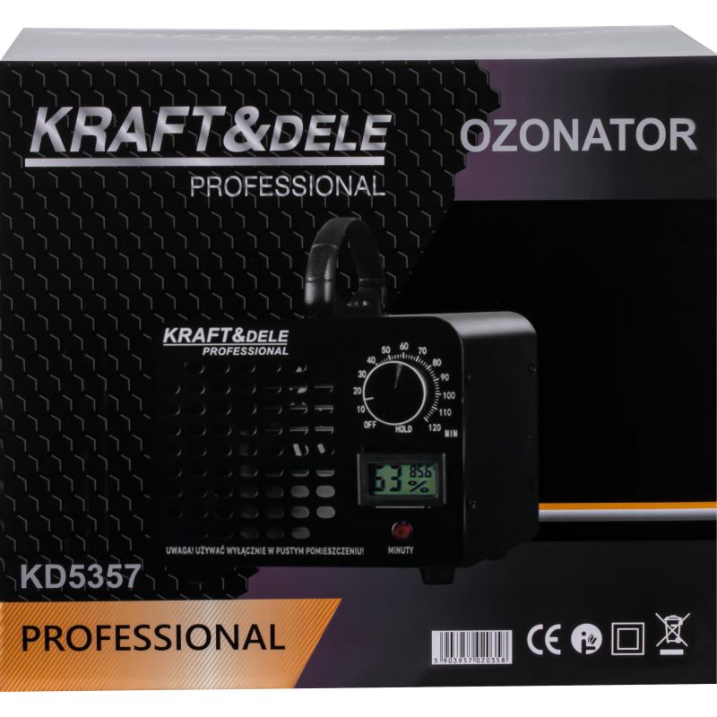 KD5357 to wydajny ozonator powietrza marki KRAFT&DELE, przeznaczony do skutecznej dezynfekcji pomieszczeń zamkniętych, przestrzeni usługowych oraz pojazdów. Generator produkuje ozon (O3) z otaczającego powietrza, który jest jednym z najskuteczniejszych znanych środków dezynfekcyjnych, umożliwiając kompleksowe oczyszczanie powietrza bez użycia chemii.