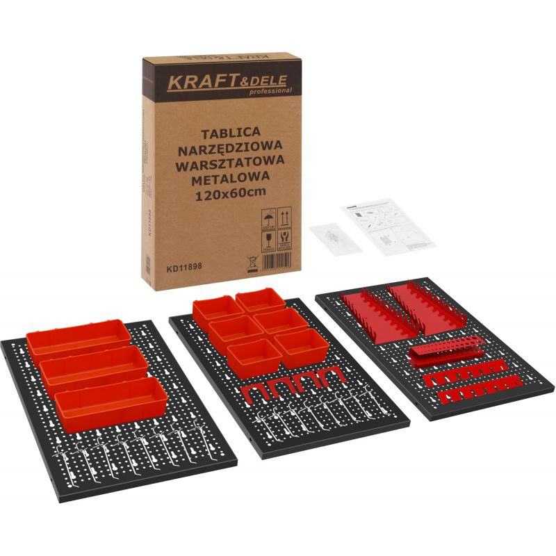 KD11898 to funkcjonalna tablica narzędziowa marki KRAFT&DELE, przeznaczona do uporządkowanego przechowywania narzędzi w warsztacie, garażu lub pracowni. Duży format 120x60 cm oraz podział na trzy segmenty pozwalają na wygodne rozmieszczenie osprzętu i dopasowanie układu do indywidualnych potrzeb użytkownika.
