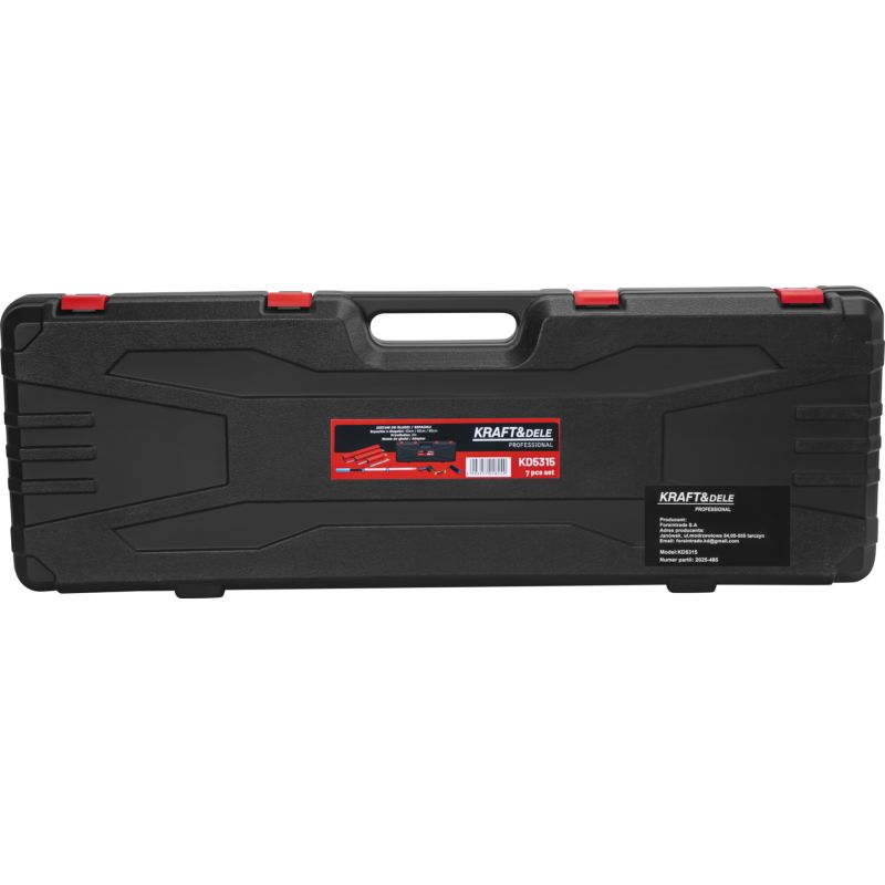 Zestaw KD5315 zawiera szpachle w czterech rozmiarach, przedłużkę 2 m, wałek do gładzi oraz adapter umożliwiający pracę pod różnym kątem. Przedłużka ułatwia pracę w wysokich pomieszczeniach bez użycia drabin. Miękka pianka na końcu kija zwiększa komfort pracy, a lekki korpus szpachli zmniejsza obciążenie.