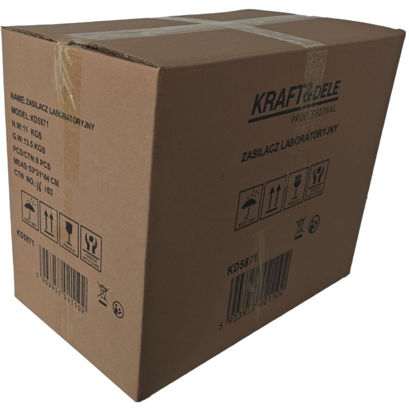 KD5871 to funkcjonalny zasilacz laboratoryjny marki KRAFT&DELE przeznaczony do zasilania urządzeń elektronicznych w warsztatach, laboratoriach, serwisach oraz podczas prac hobbystycznych. Urządzenie umożliwia stabilne i precyzyjne ustawienie napięcia oraz prądu wyjściowego, dzięki czemu doskonale sprawdza się przy testowaniu, uruchamianiu oraz diagnostyce różnego rodzaju układów elektronicznych.