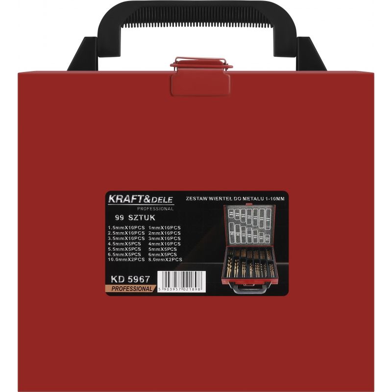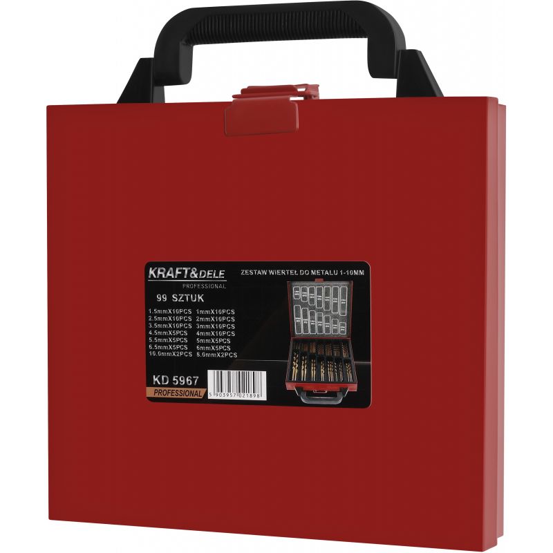 KD5967 to profesjonalny zestaw wierteł do metalu marki KRAFT&DELE, stworzony z myślą o precyzyjnych pracach warsztatowych, serwisowych oraz domowych. Komplet zawiera aż 99 elementów w najpopularniejszych rozmiarach od 1 mm do 10 mm, co pozwala na szerokie zastosowanie w różnych materiałach metalowych.