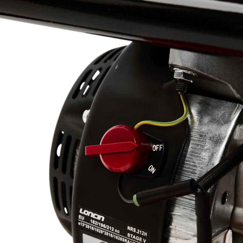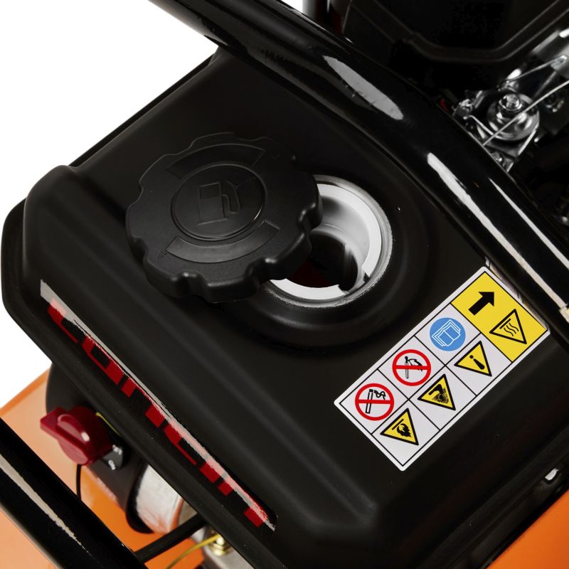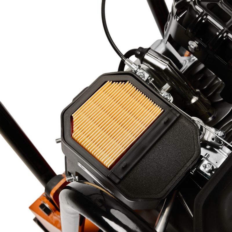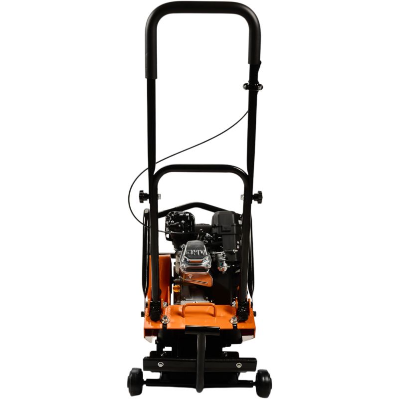 Zagęszczarka wyposażona jest w wysokowydajny, jednocylindrowy silnik benzynowy o mocy 7HP, chłodzony powietrzem. Dodatkowy stelaż z kołami transportowymi ułatwia przemieszczanie urządzenia, a gumowa mata pozwala na bezpieczną pracę przy układaniu kostki brukowej bez ryzyka uszkodzenia powierzchni.